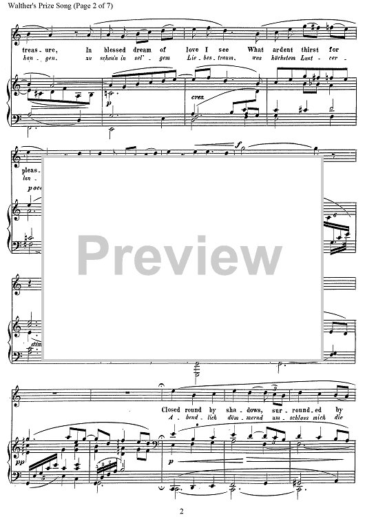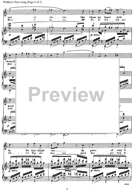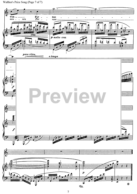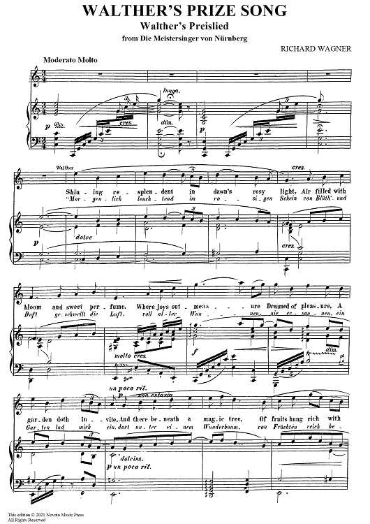 Digital Sheet Music for Walther's Prize Song - from Die Meistersinger von Nürnberg by Richard Wagner scored for Voice/Piano; id:468927