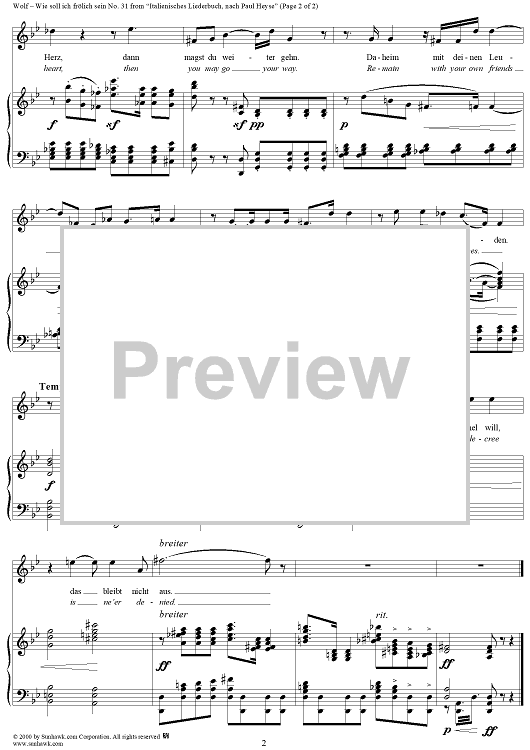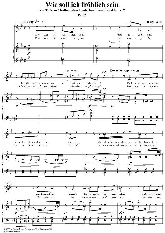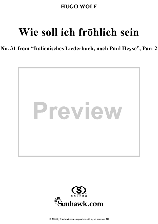 Digital Sheet Music for Wie soll ich fröhlich sein und lachen gar, No. 31 from "Italienisches Liederbuch, nach Paul Heyse", Part 2 by Hugo Wolf scored for Voice/Piano; id:266785