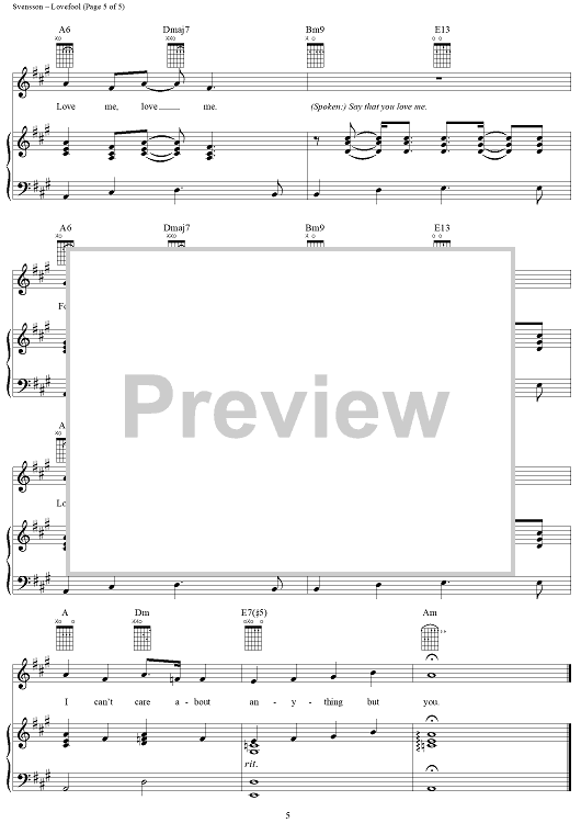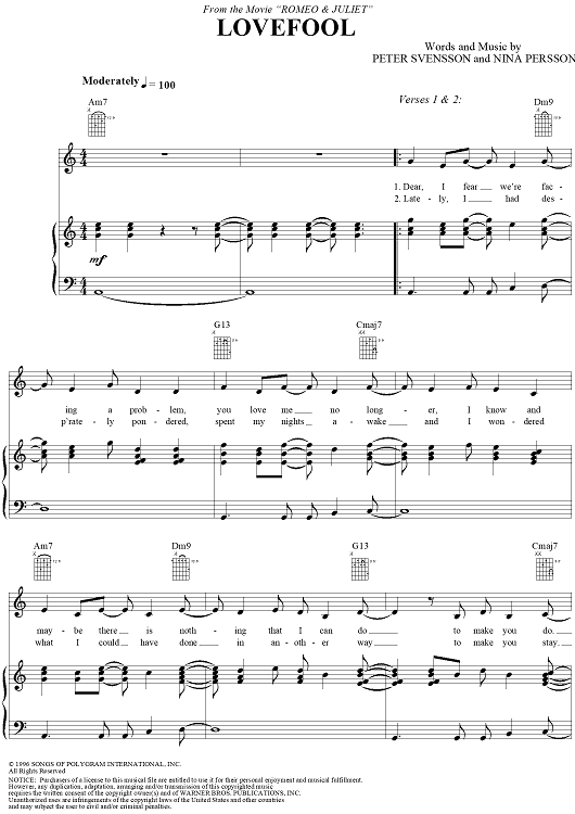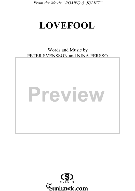 Digital Sheet Music for Lovefool by Nina Persson, Peter Svensson scored for Piano/Vocal/Chords; id:258706