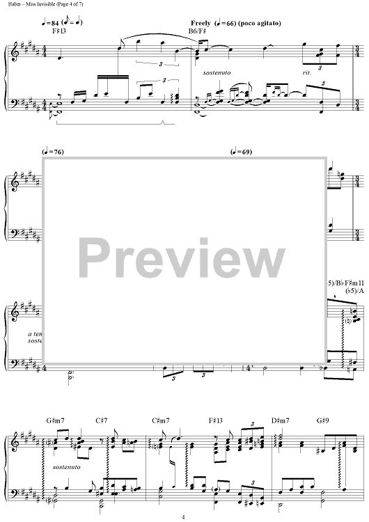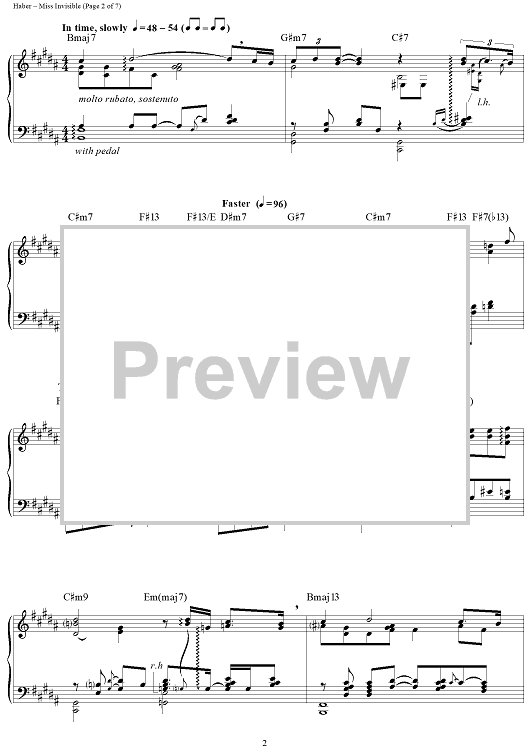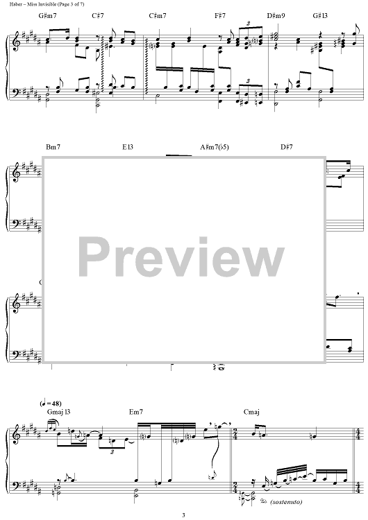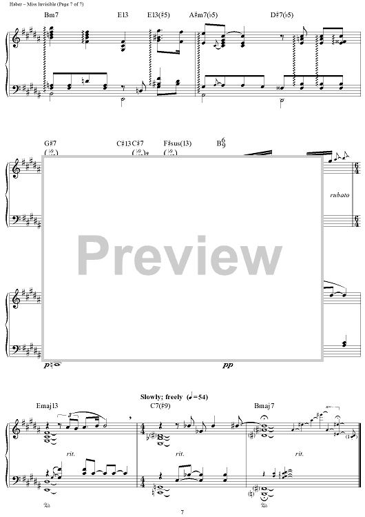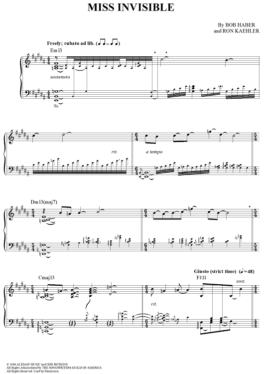 Digital Sheet Music for Miss Invisible by Sammy Cahn, George Shearing, Bob Haber, Ron Kaehler scored for Piano Solo; id:283443