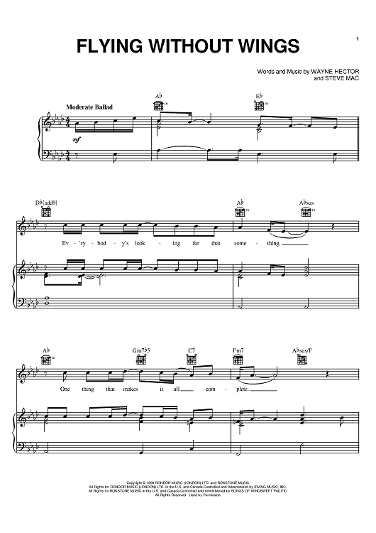 Digital Sheet Music for Flying Without Wings by Wayne Hector, Ruben Studdard, Steve McCutcheon scored for Piano/Vocal/Chords; id:371911