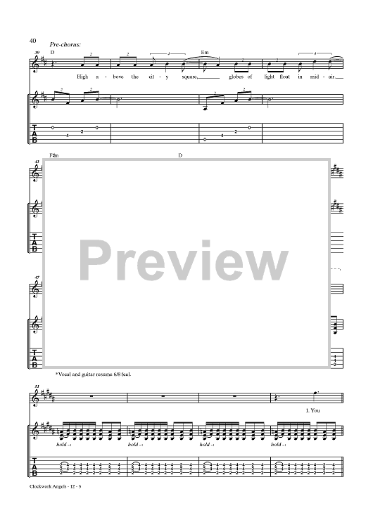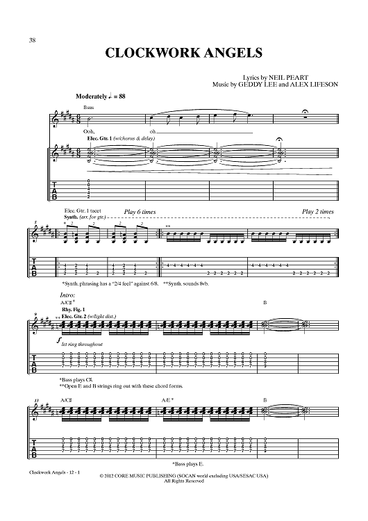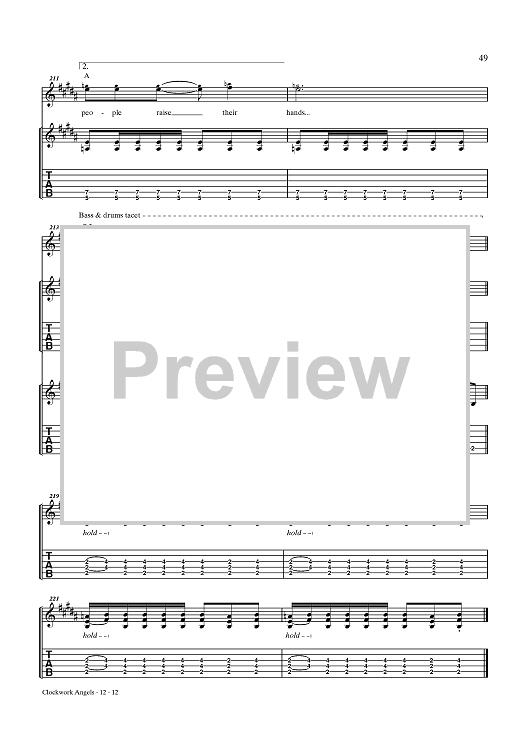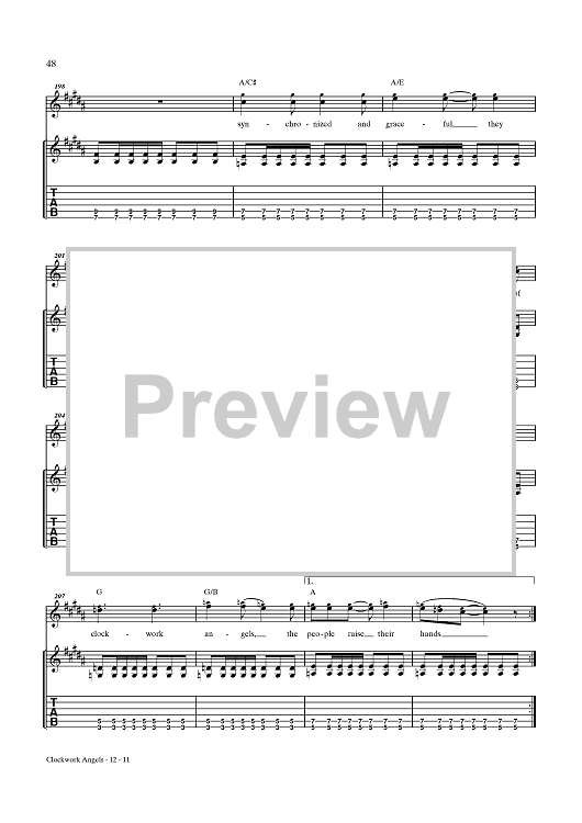 Digital Sheet Music for Clockwork Angels by Rush, Geddy Lee, Alex Lifeson, Neil Peart scored for Guitar Tab/Vocal; id:432886
