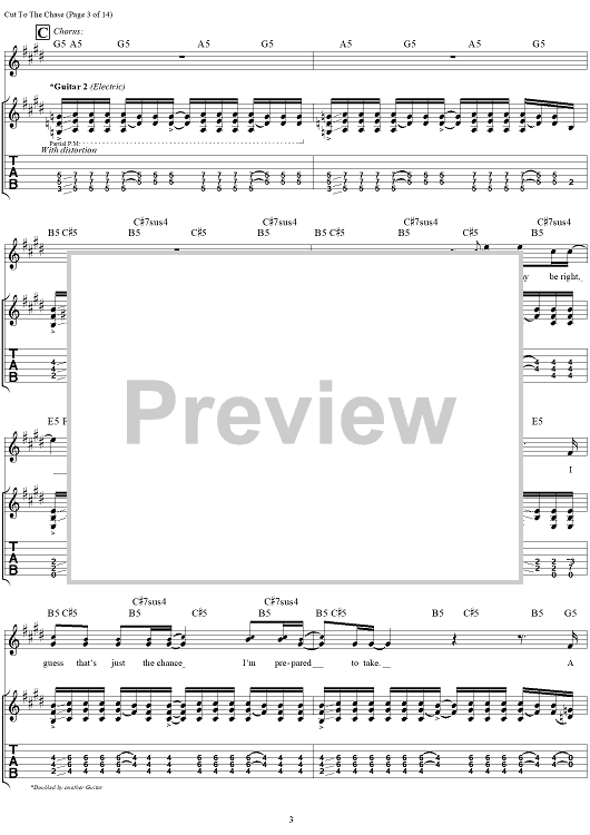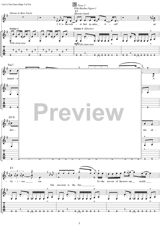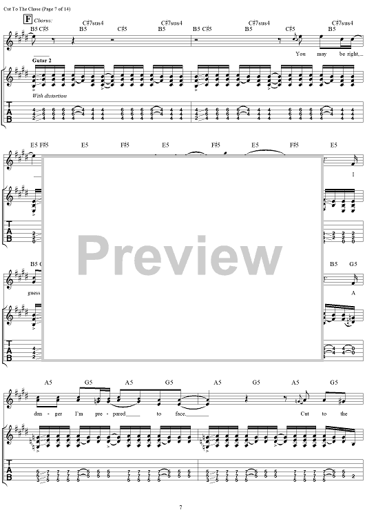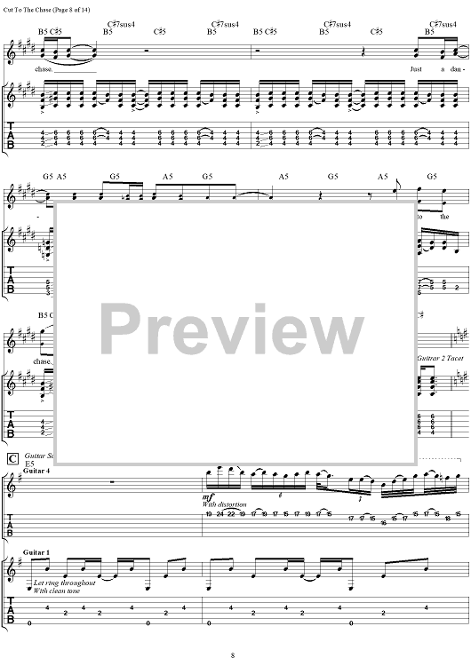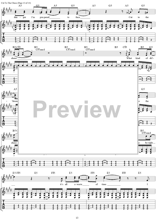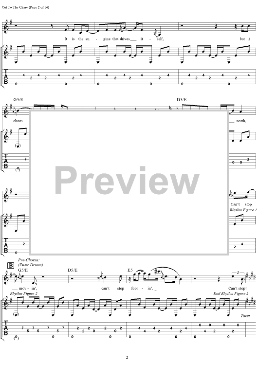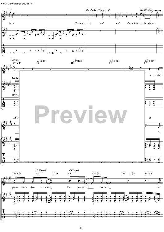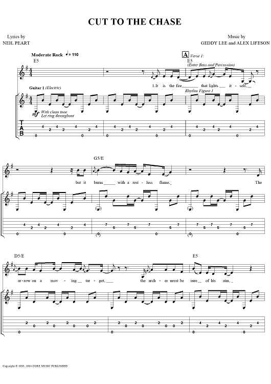 Digital Sheet Music for Cut to the Chase by Rush, Geddy Lee, Alex Lifeson, Neil Peart scored for Guitar Tab/Vocal; id:265424