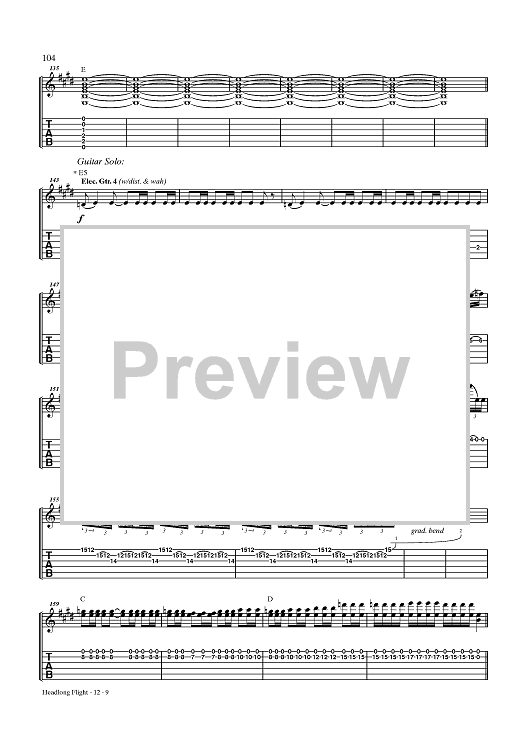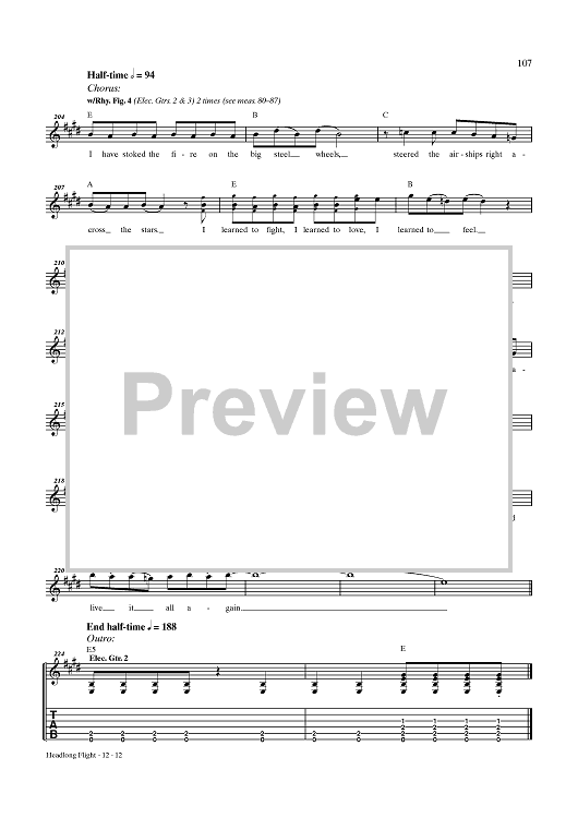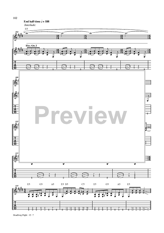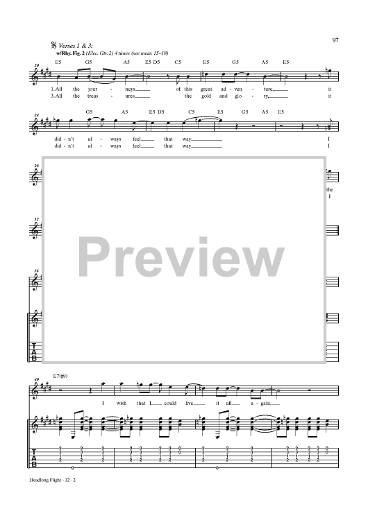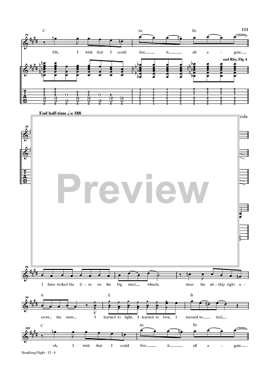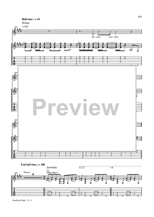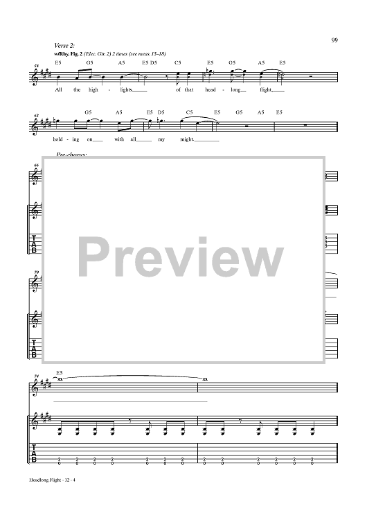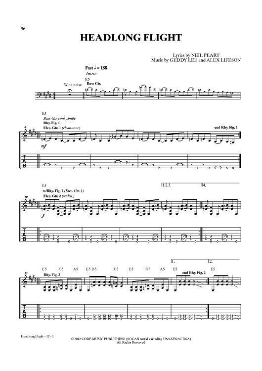 Digital Sheet Music for Headlong Flight by Rush, Geddy Lee, Alex Lifeson, Neil Peart scored for Guitar Tab/Vocal; id:432892