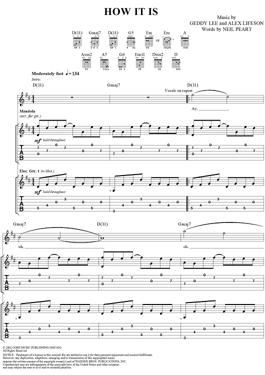 "How It Is" Sheet Music by Rush