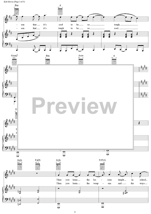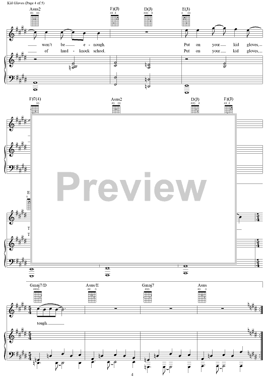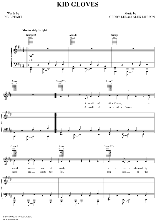 Digital Sheet Music for Kid Gloves by Rush, Geddy Lee, Alex Lifeson, Neil Peart scored for Piano/Vocal/Chords; id:124269