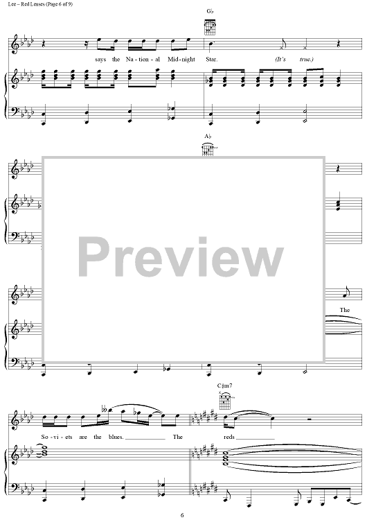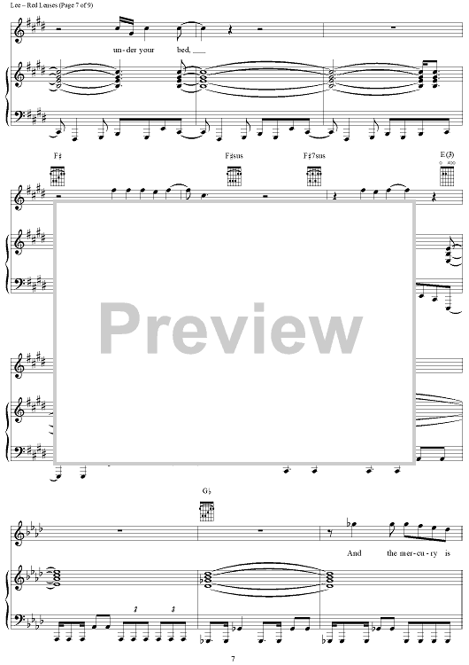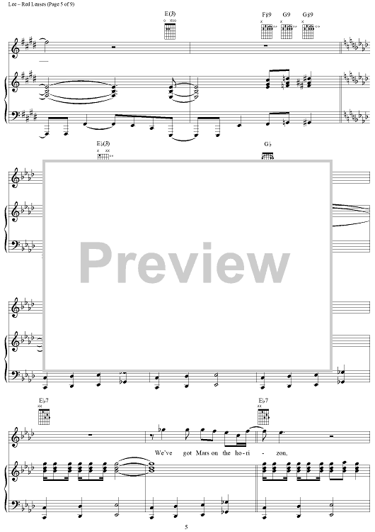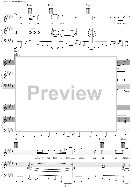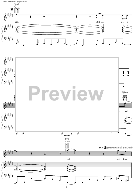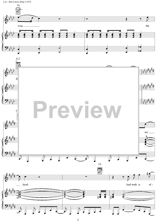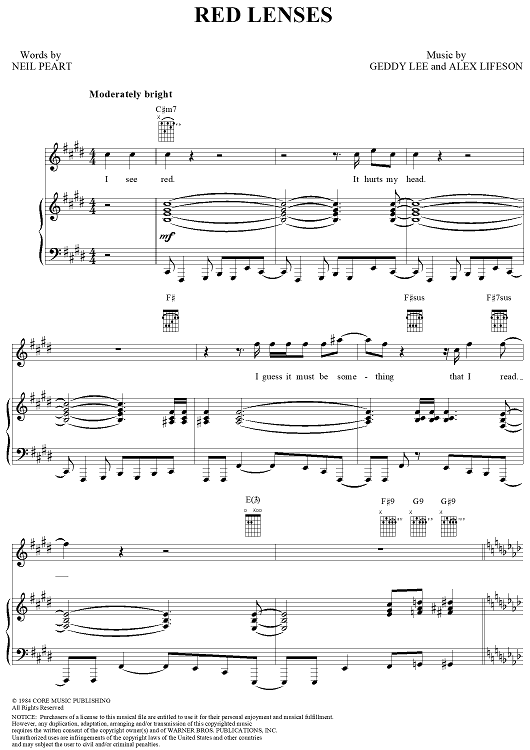 Digital Sheet Music for Red Lenses by Rush, Geddy Lee, Alex Lifeson, Neil Peart scored for Piano/Vocal/Chords; id:241665