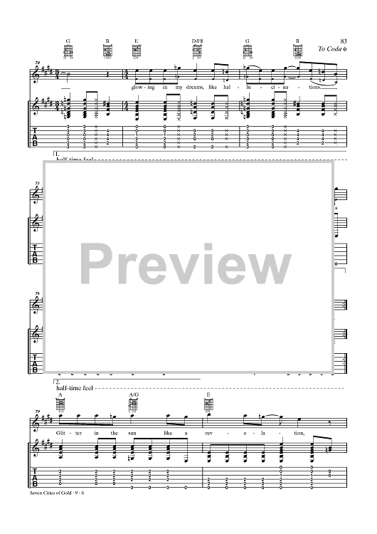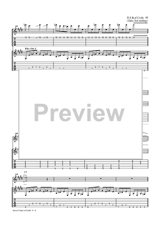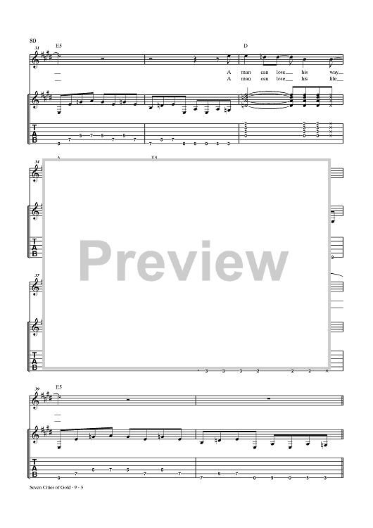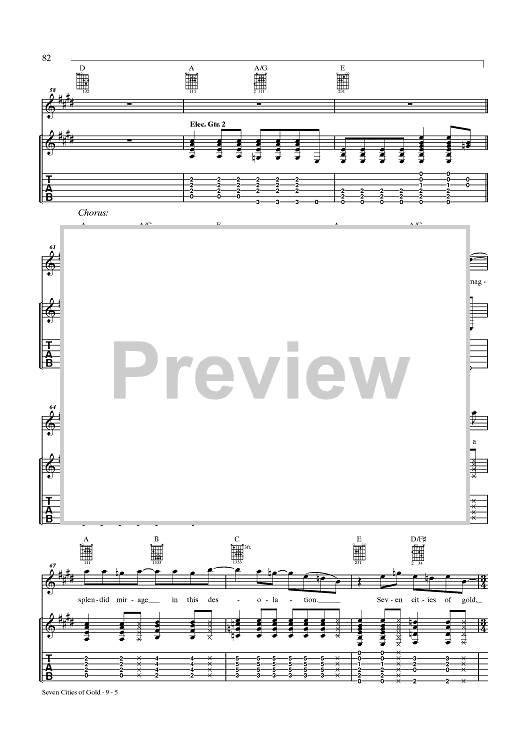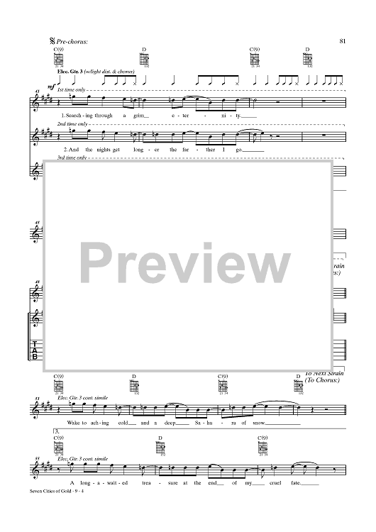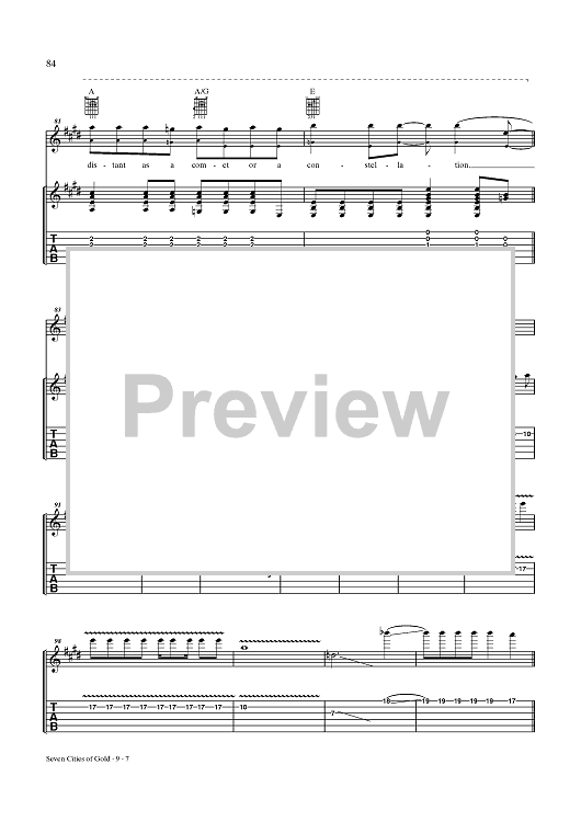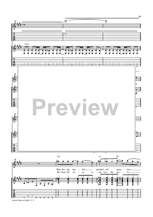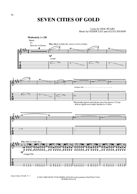Digital Sheet Music for Seven Cities Of Gold by Rush, Geddy Lee, Alex Lifeson, Neil Peart scored for Guitar Tab/Vocal; id:432890