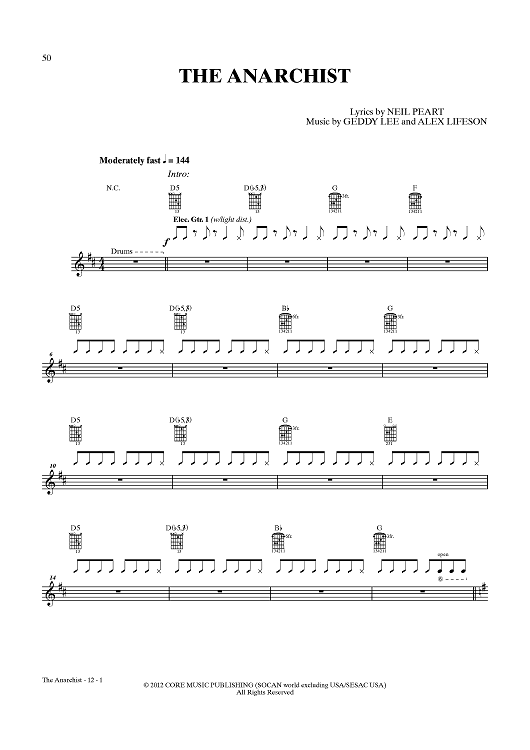 "The Anarchist" Sheet Music by Rush
