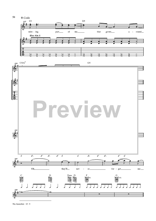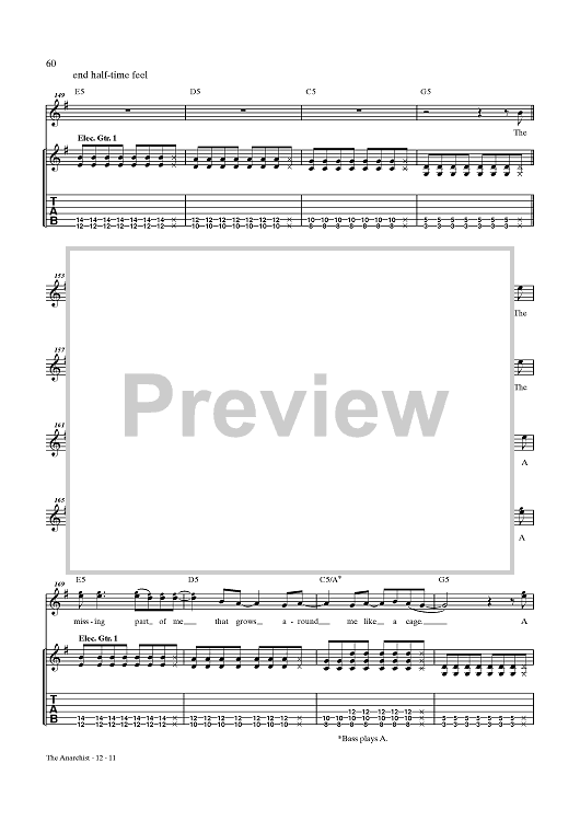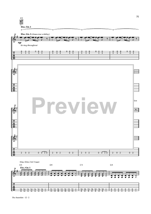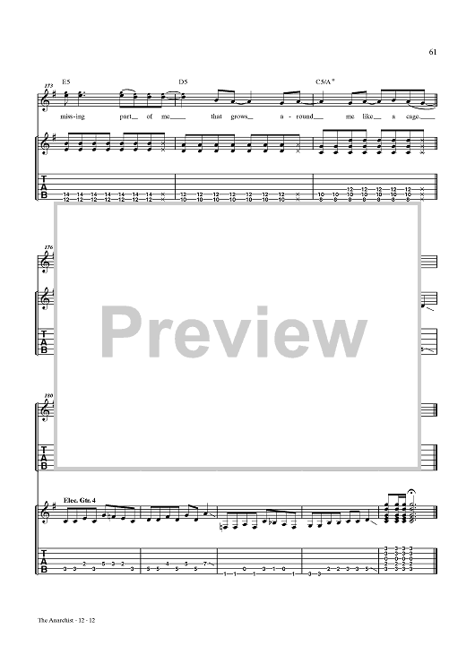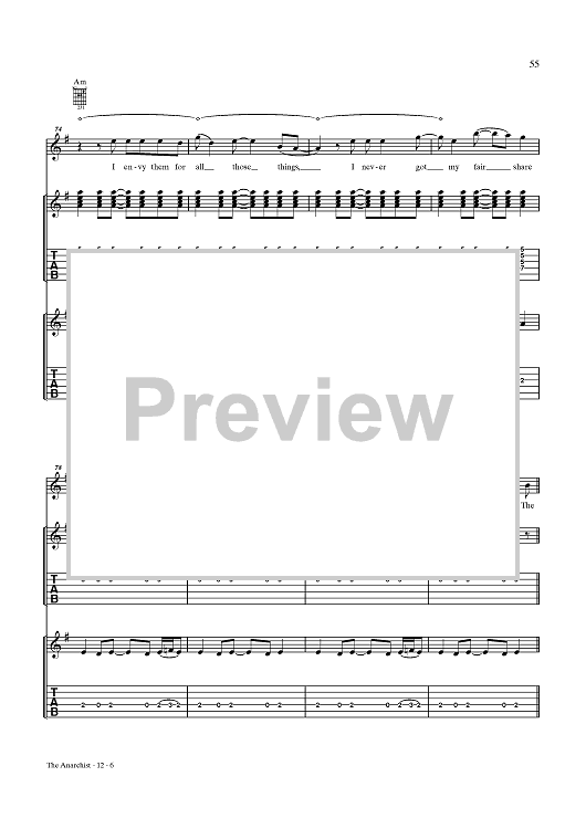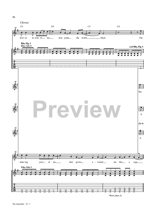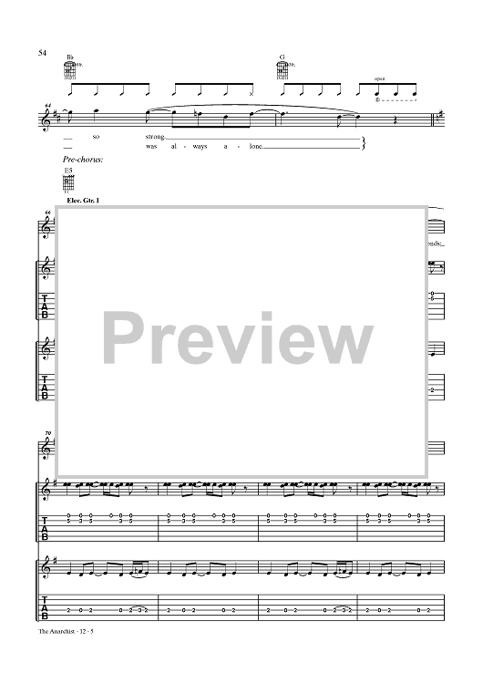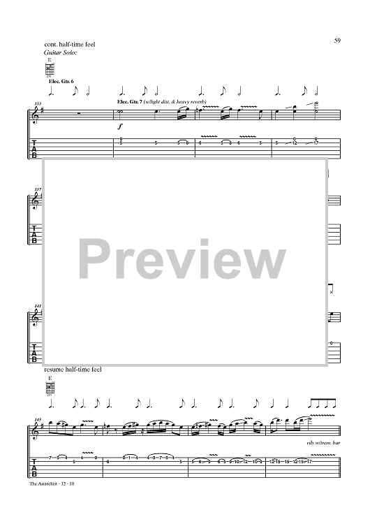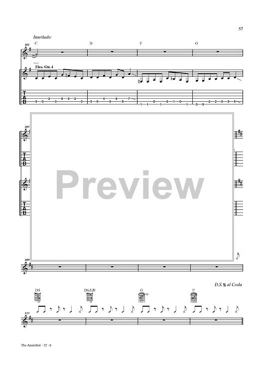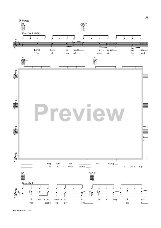 Digital Sheet Music for The Anarchist by Rush, Geddy Lee, Alex Lifeson, Neil Peart scored for Guitar Tab/Vocal; id:432887