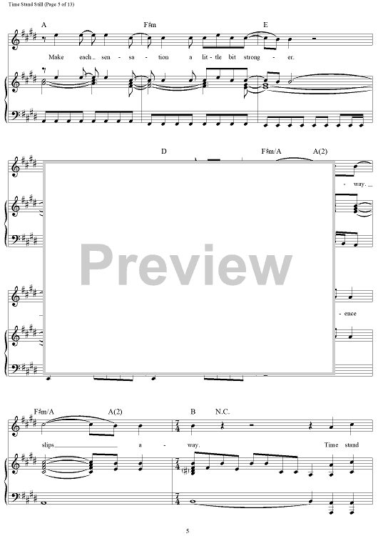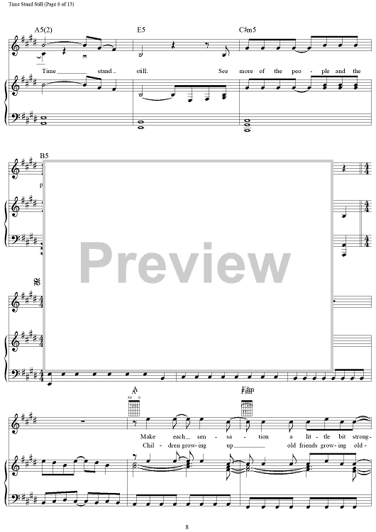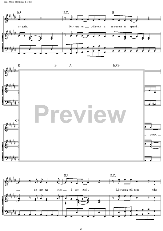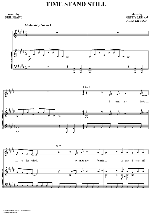 Digital Sheet Music for Time Stand Still by Rush, Geddy Lee, Alex Lifeson, Neil Peart scored for Piano/Vocal/Chords; id:124270