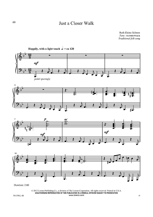 Digital Sheet Music for Just a Closer Walk by Ruth Elaine Schram, Traditional Folk Song scored for Piano Solo; id:433719