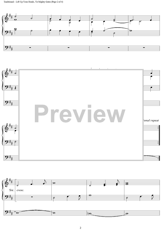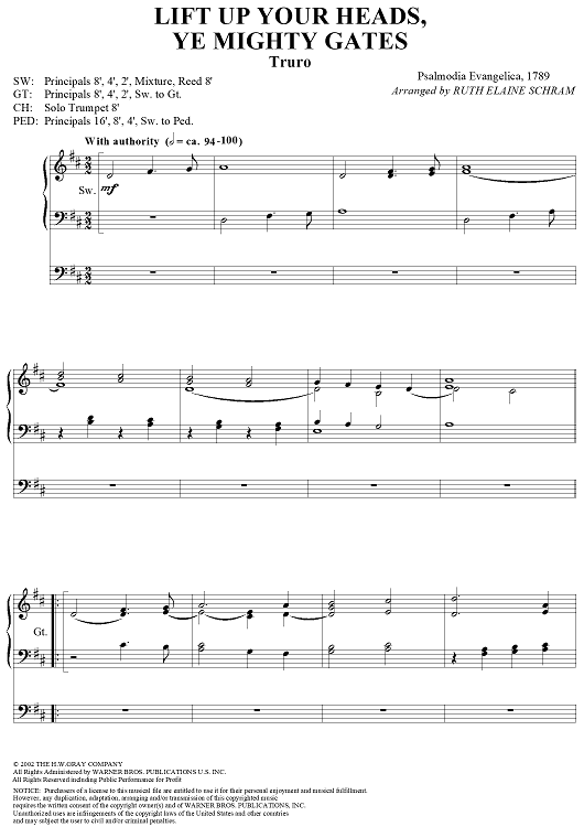 Digital Sheet Music for Lift Up Your Heads, Ye Mighty Gates by Ruth Elaine Schram scored for Organ Solo; id:291164