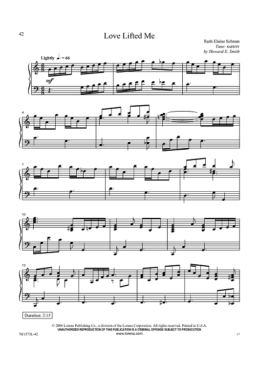Digital Sheet Music for Love Lifted Me by Ruth Elaine Schram, Howard E. Smith scored for Piano Solo; id:433431