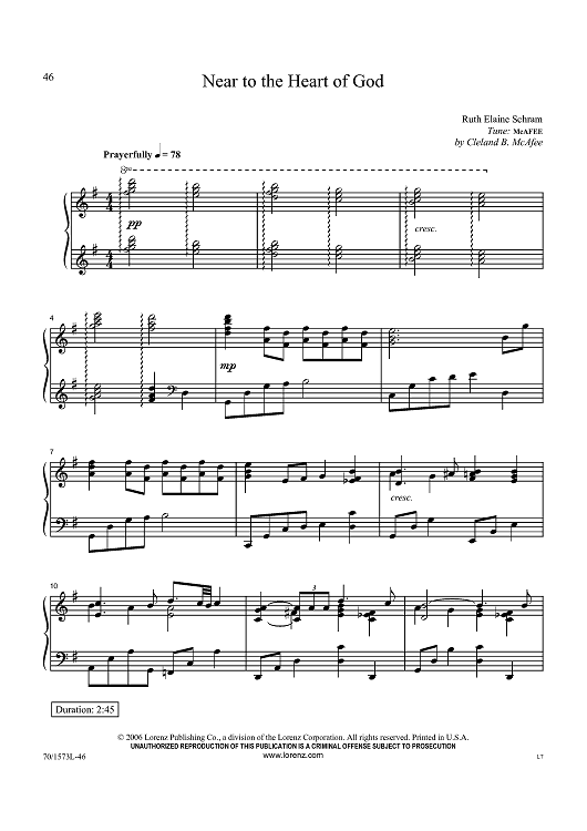 Digital Sheet Music for Near to the Heart of God by Ruth Elaine Schram, Cleland B. McAfee scored for Piano Solo; id:433432