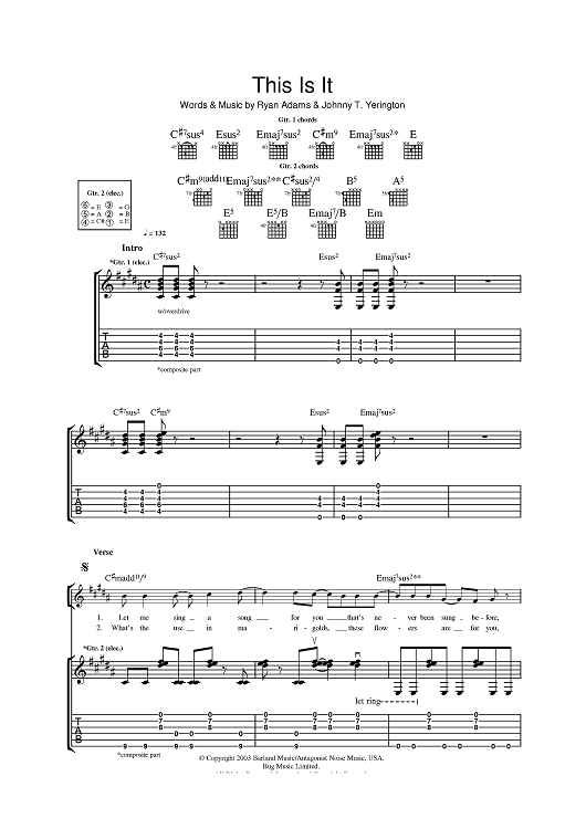 Digital Sheet Music for This Is It by Ryan Adams, Johnny T. Yerington scored for Guitar Tab; id:397975