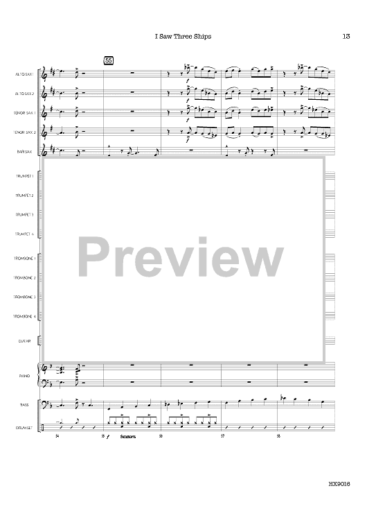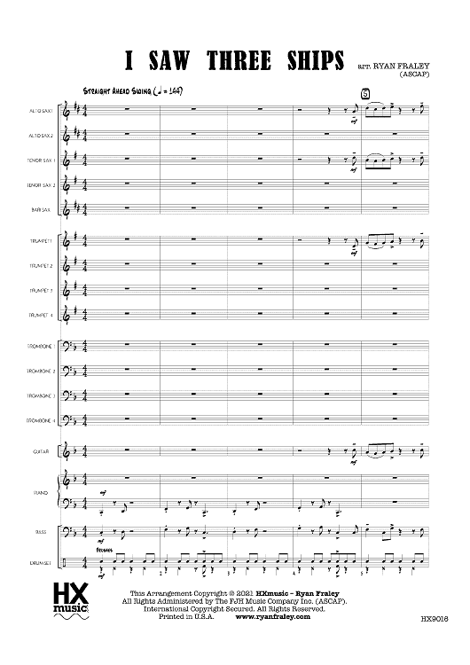 Understated, straight-ahead swing à la Dave Brubeck meets a traditional English Christmas carol. There’s mostly full-ensemble playing with a brief, written trumpet solo, cued for Trombone. Drums played with brushes and optional Bells are featured. A charming addition to the holiday library. (Top Trumpet Note: G5)
