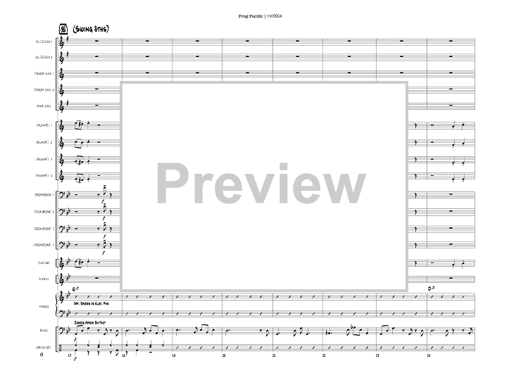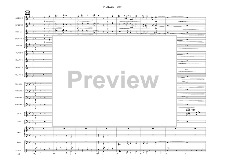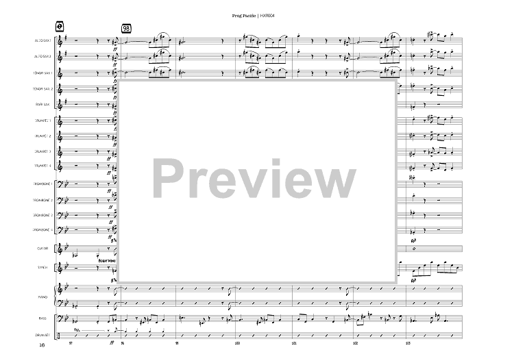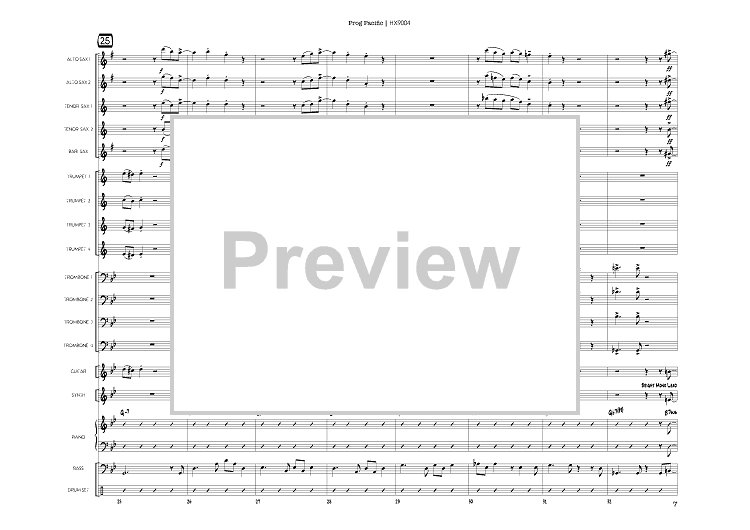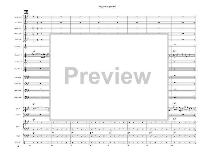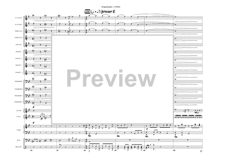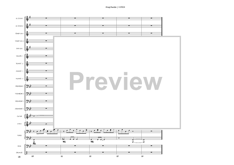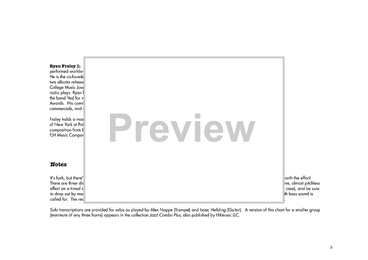 With a bit of progressive rock and a lot of half-time funk, this great chart can be rounded out with optional synthesizer and electric guitar. The sticky grooves and melodies drive the point home. Two carefully transcribed solos are provided for trumpet and guitar that match the superb recorded solos, or they can be improvised as desired. Optional parts are included for flute/violin, clarinet and F horn, and the lead trumpet range is to G top of staff. You can have fun and experiment with different effects in the optional synthesizer part that's well worth the effort. Serious fun and great change-of-pace programming!