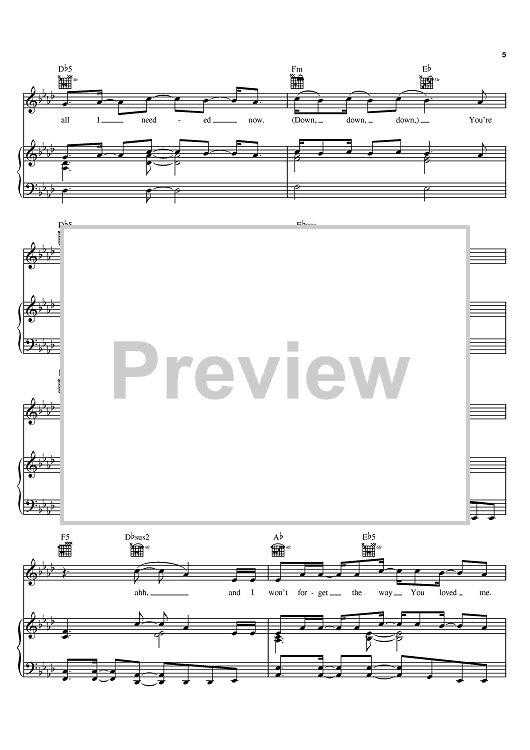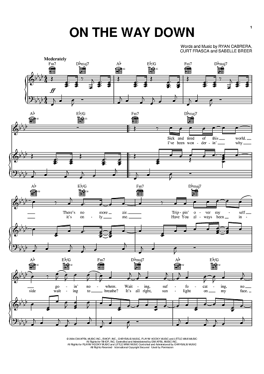Digital Sheet Music for On The Way Down by Curt Frasca, Sabelle Breer, Ryan Cabrera scored for Piano/Vocal/Chords; id:379268