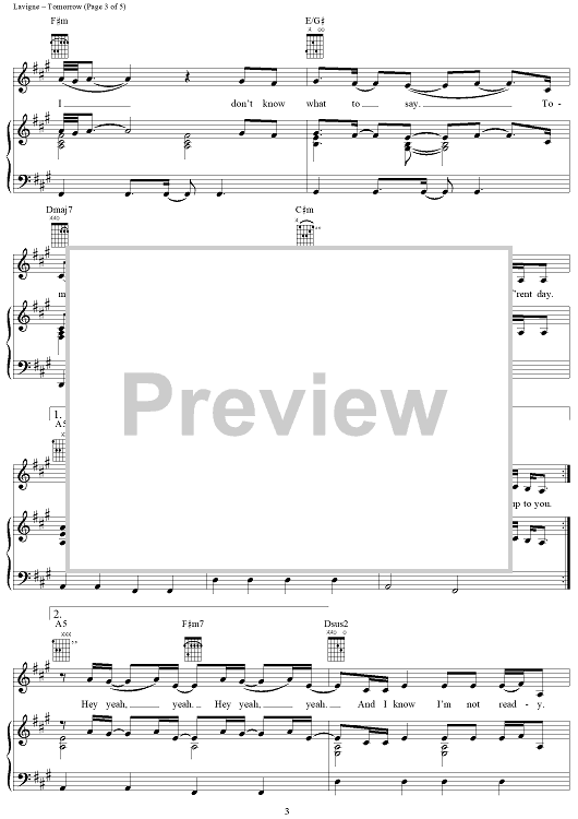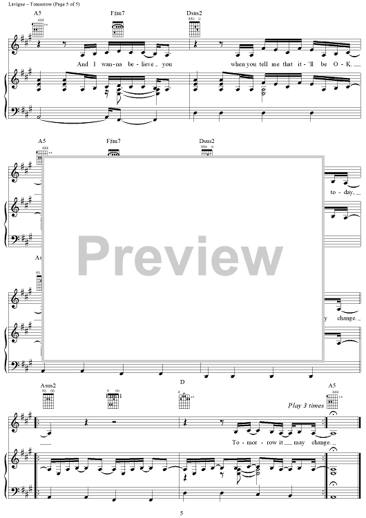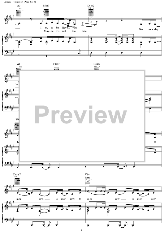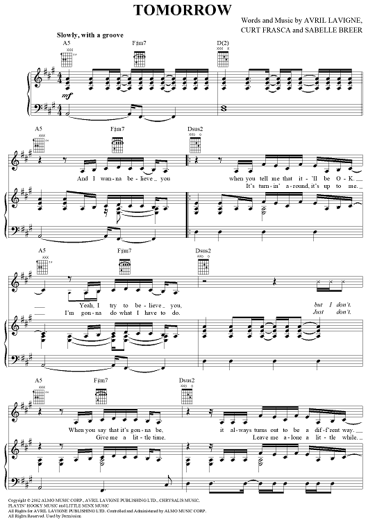 Digital Sheet Music for Tomorrow by Curt Frasca, Avril Lavigne, Sabelle Breer scored for Piano/Vocal/Chords; id:367135