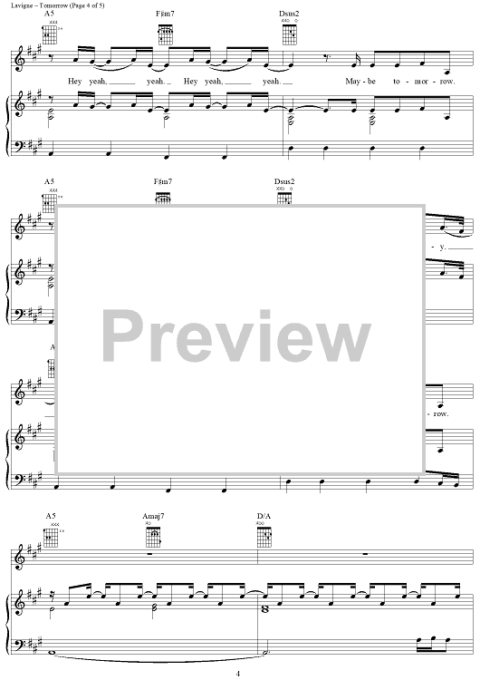 "Tomorrow" Sheet Music by Avril Lavigne