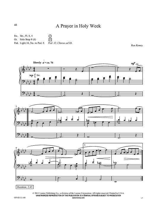 Digital Sheet Music for A Prayer in Holy Week by Rex Koury scored for Organ Solo; id:434368