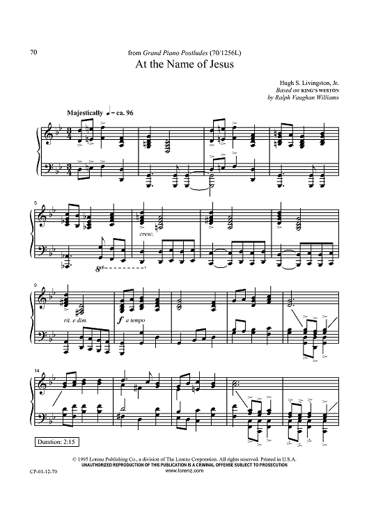 Digital Sheet Music for At the Name of Jesus by Ralph Vaughan Williams, Hugh S. Livingston, Jr. scored for Piano Solo; id:434587