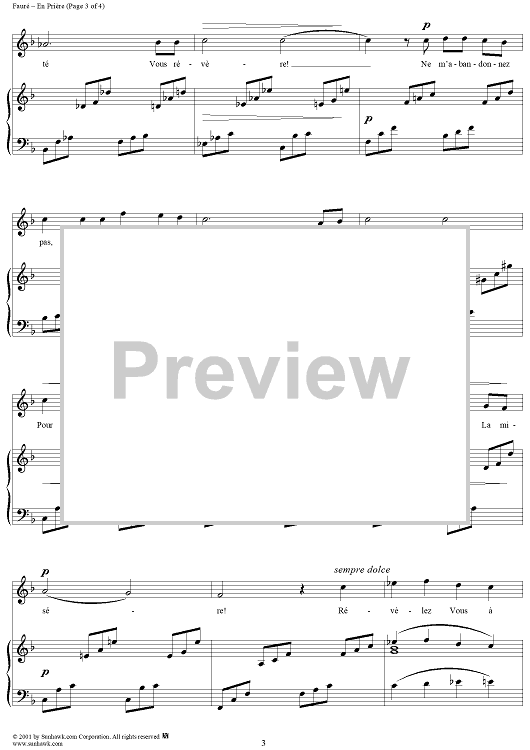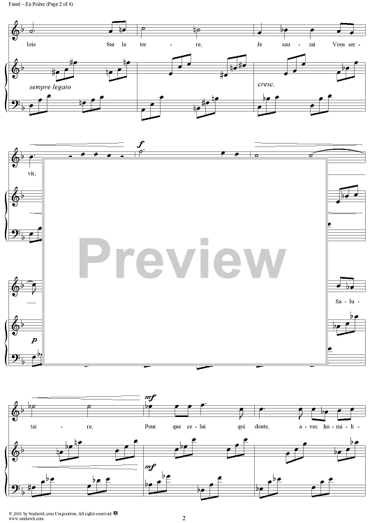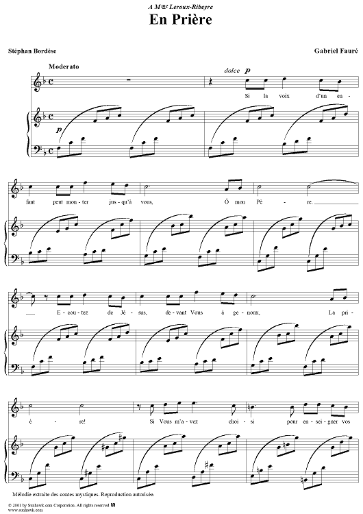 Digital Sheet Music for En Prière by Gabriel Fauré, Stéphan Bordèse scored for Voice/Piano; id:189400