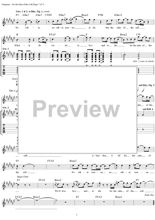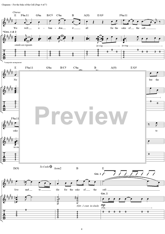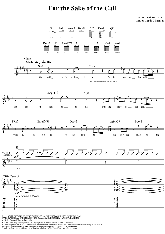 "For the Sake of the Call" Sheet Music by Steven Curtis Chapman