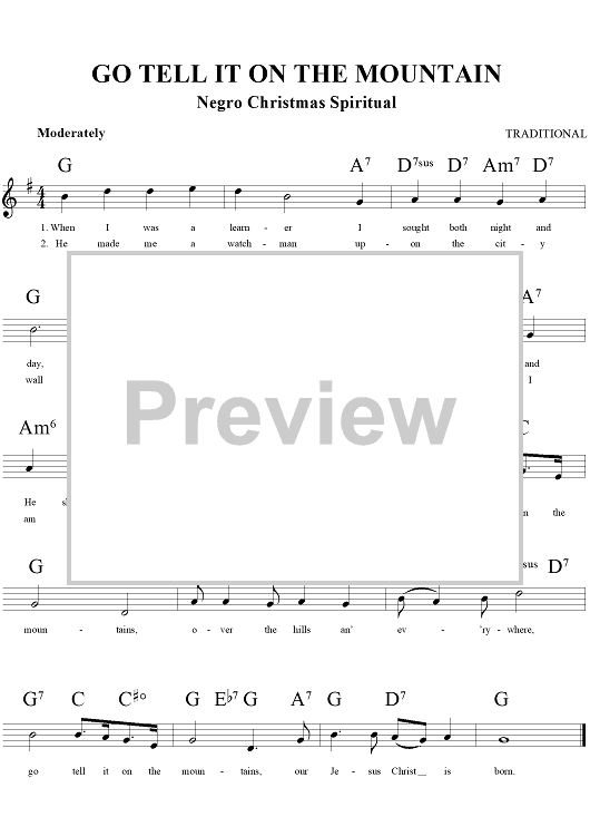 Digital Sheet Music for Go Tell It On The Mountain by Traditional scored for Lead Sheet; id:131729