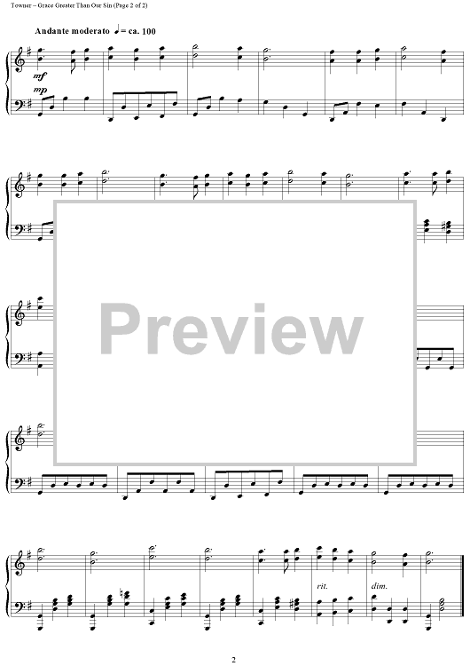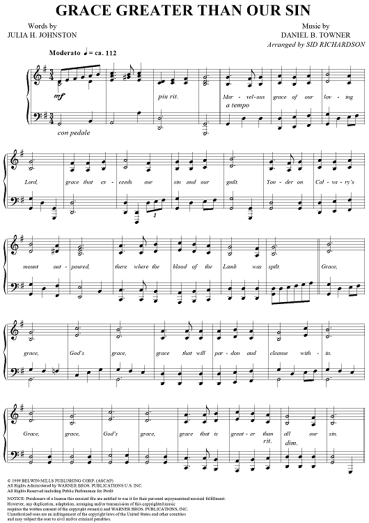 Digital Sheet Music for Grace Greater Than Our Sin by Sid Richardson, Daniel B. Towner, Julia H. Johnston scored for Piano Solo; id:260352
