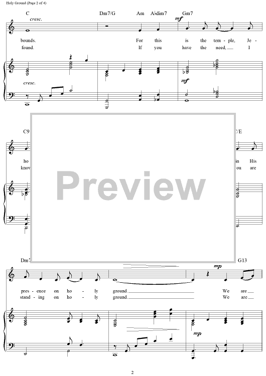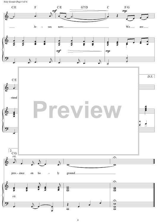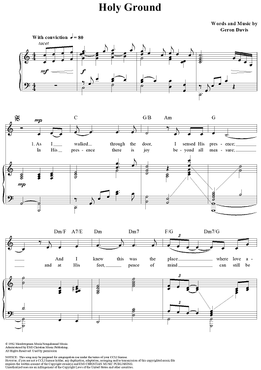 Digital Sheet Music for Holy Ground by Geron Davis scored for Piano/Vocal/Chords; id:114344