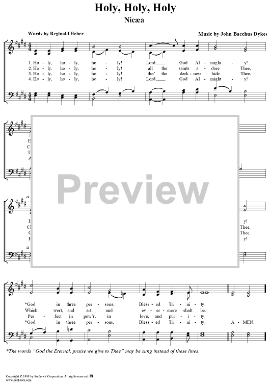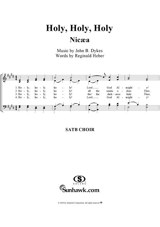 Digital Sheet Music for Holy, Holy, Holy by Reginald Heber, John Bacchus Dykes scored for Four-part Mixed Chorus; id:113892