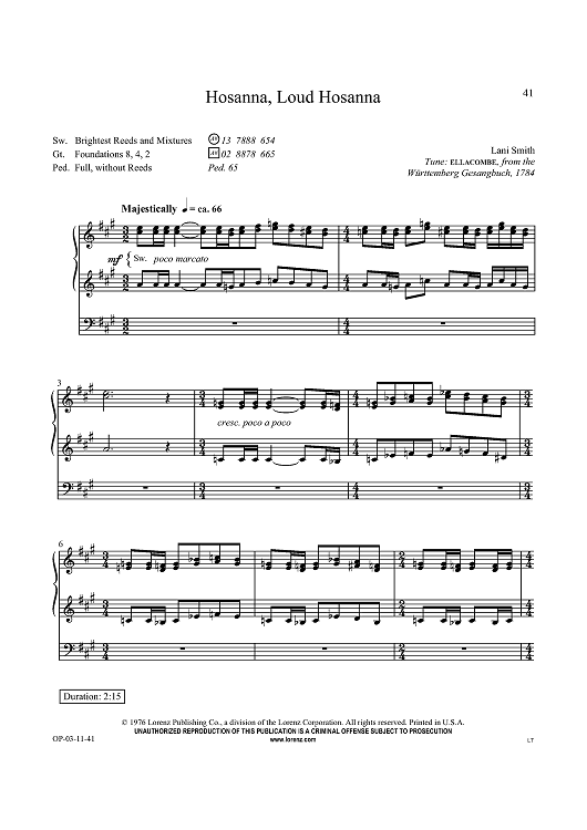 Digital Sheet Music for Hosanna, Loud Hosanna by Unknown, Lani Smith scored for Organ Solo; id:434382