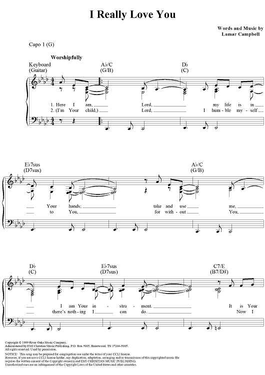 Digital Sheet Music for I Really Love You by Lamar Campbell scored for Piano/Vocal/Chords; id:154953