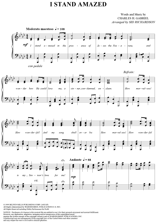 Digital Sheet Music for I Stand Amazed by Sid Richardson, Charles H. Gabriel scored for Piano Solo; id:268776