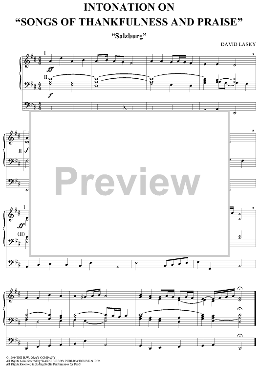 "Intonation on "Songs of Thankfulness and Praise" - Organ" Sheet Music by David Lasky