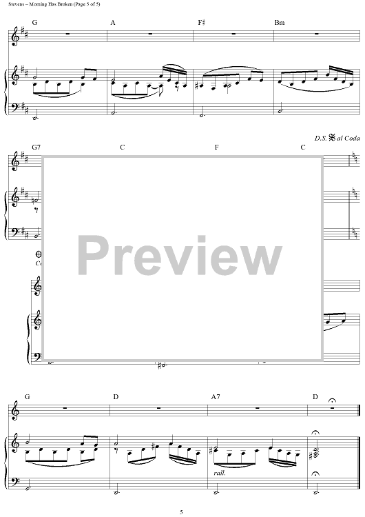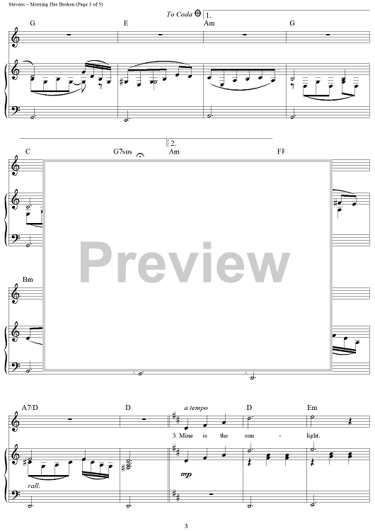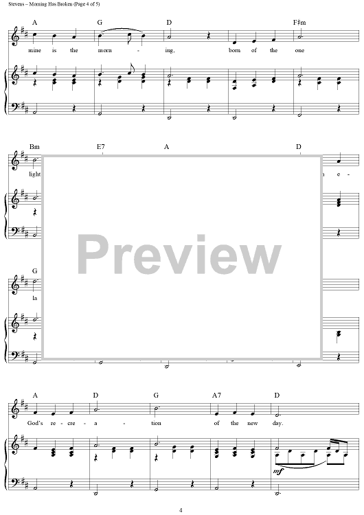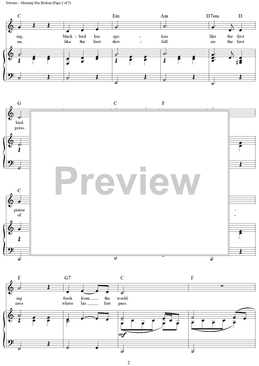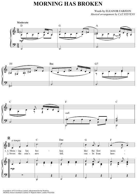 Digital Sheet Music for Morning Has Broken by Cat Stevens, Eleanor Farjeon, Traditional scored for Piano/Vocal/Chords; id:362924