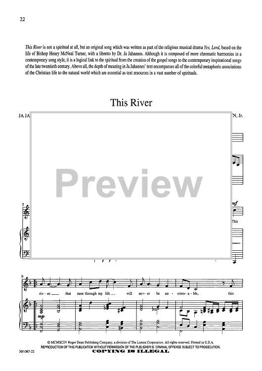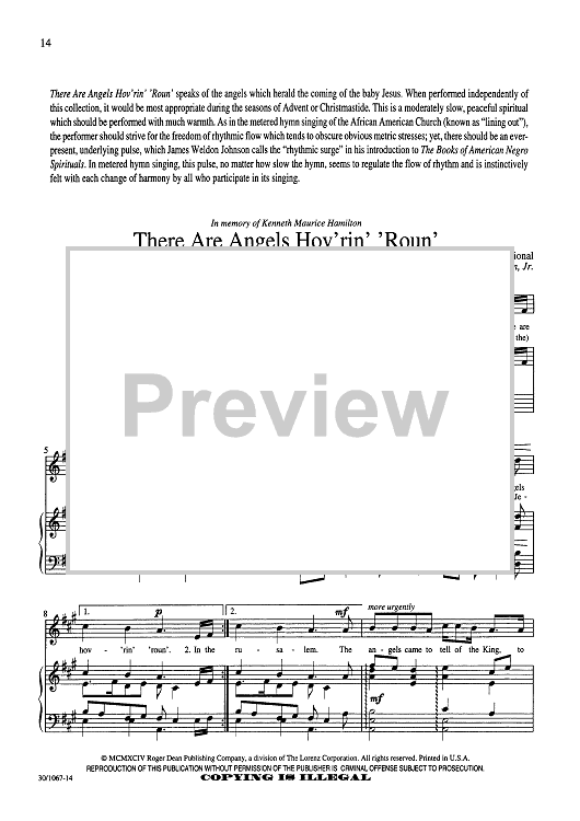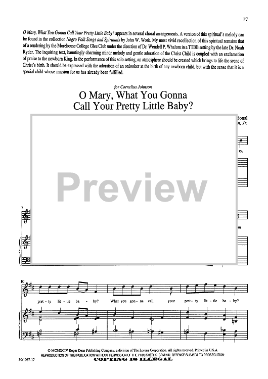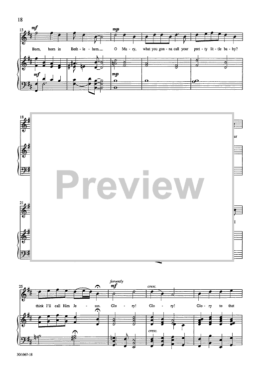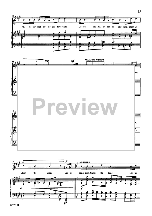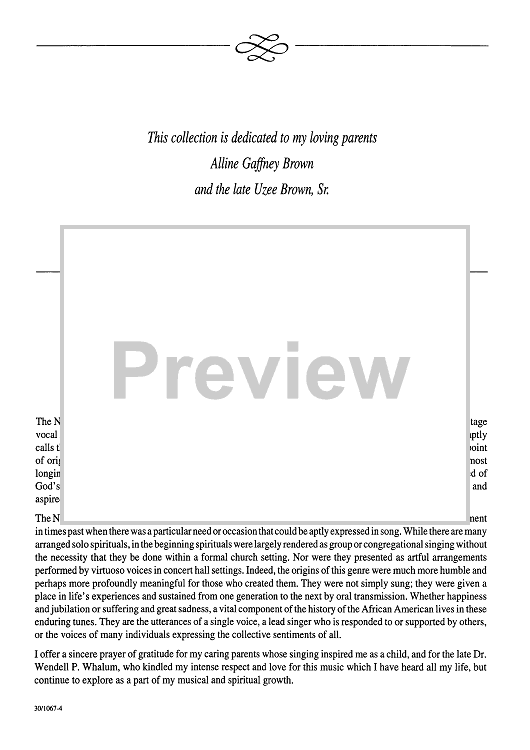 “The Negro Spiritual is one of the most precious gems of the African American folk music tradition.” So begins the introduction to this volume by arranger and composer Uzee Brown Jr. This collection of eight spirituals for solo voice and piano is designed as both a recital set for an accomplished soloist and for use throughout the Christian year during the appropriate seasons with songs for Christmas, Lent, Easter, and general praise. Standards in the concert repertoire of American singers, these arrangements are sure to delight audiences and congregations alike.