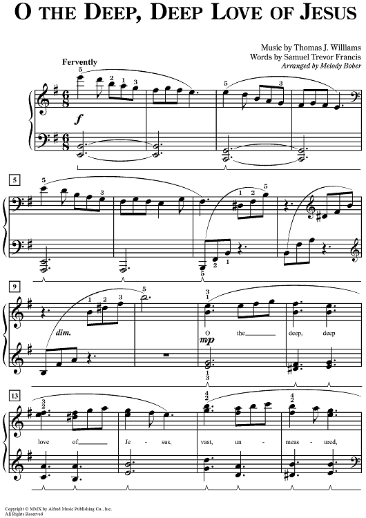 Digital Sheet Music for O the Deep, Deep Love of Jesus by Thomas J. Williams, Samuel T. Francis, Melody Bober scored for Piano; id:498203