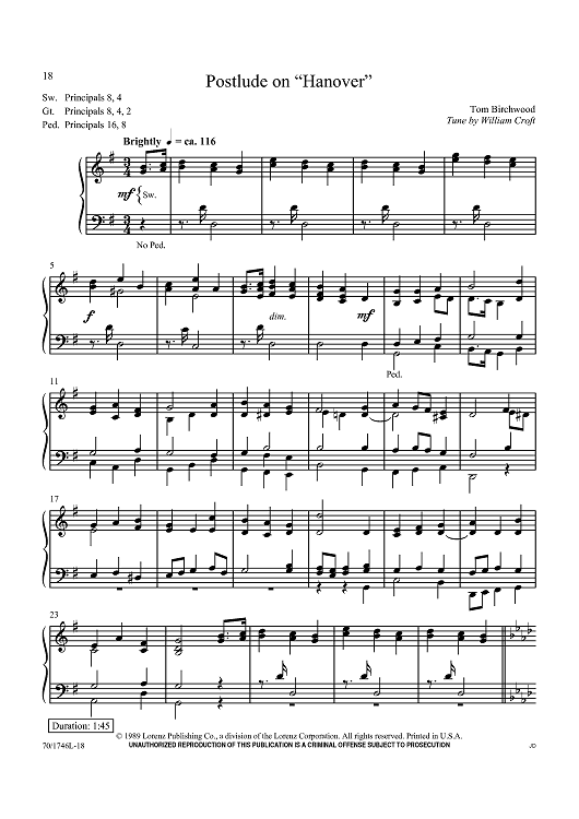 Digital Sheet Music for Postlude on "Hanover" by , William Croft, Tom Birchwood scored for Organ Solo; id:434728