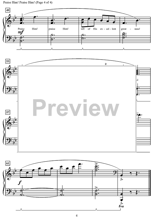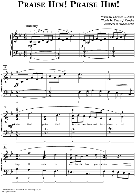 Digital Sheet Music for Praise Him! Praise Him! by Fanny Crosby, Chester G. Allen, Melody Bober scored for Piano; id:498204