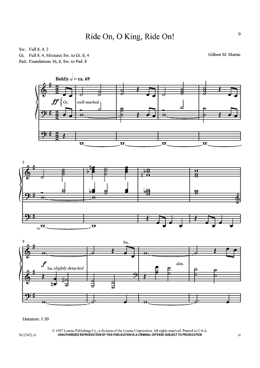 Digital Sheet Music for Ride On, O King, Ride On! by Gilbert M. Martin scored for Organ Solo; id:437642