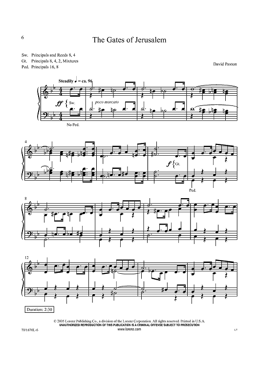 Digital Sheet Music for The Gates of Jerusalem by David Paxton scored for Organ Solo; id:434123