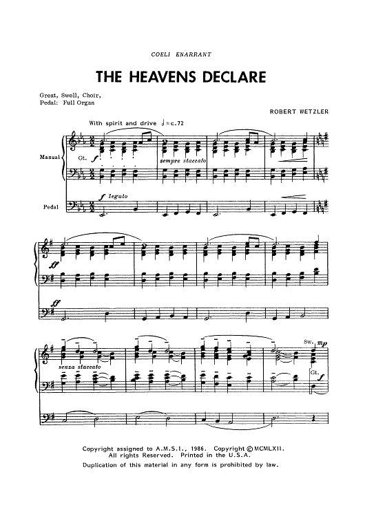 Digital Sheet Music for The Heavens Declare by Robert Wetzler scored for Organ Solo; id:434636