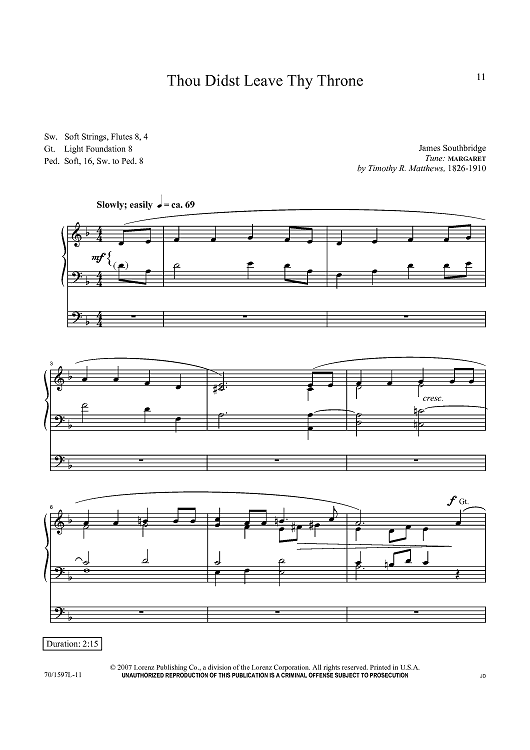Digital Sheet Music for Thou Didst Leave Thy Throne by Timothy Richard Matthews, James Southbridge scored for Organ Solo; id:434916
