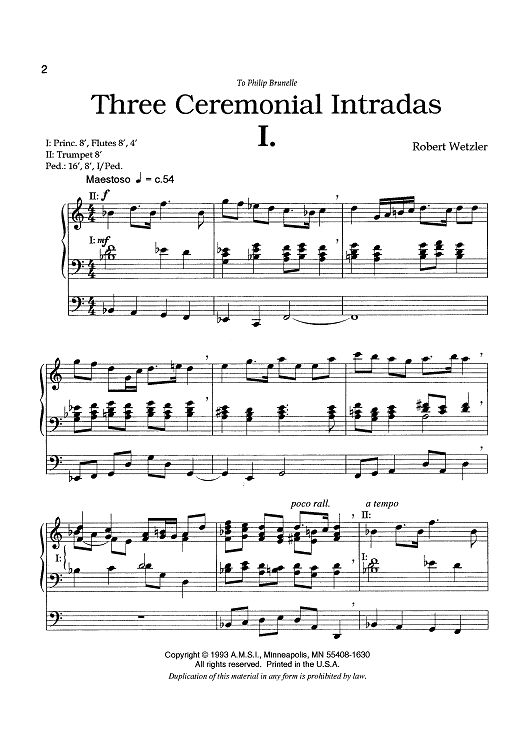 Digital Sheet Music for Three Ceremonial Intradas by Robert Wetzler scored for Organ Solo; id:434621