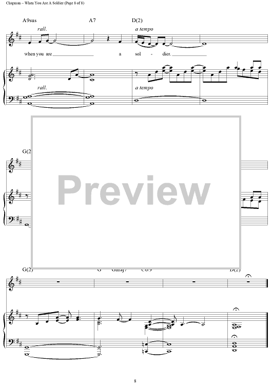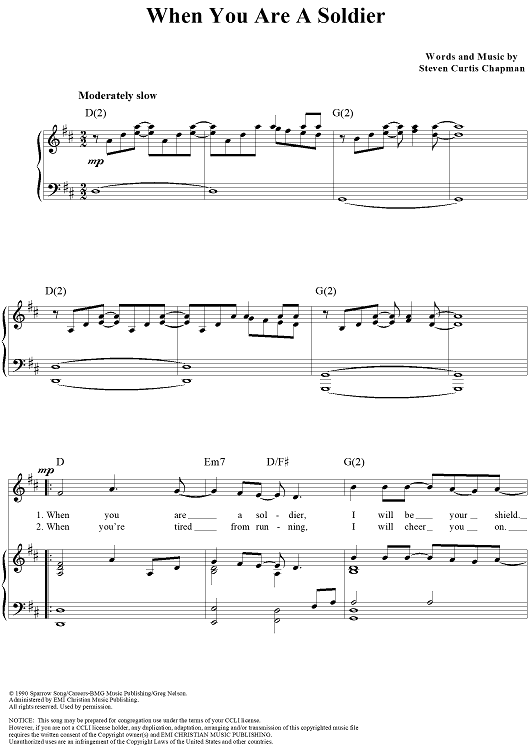 Digital Sheet Music for When You Are A Soldier by Steven Curtis Chapman scored for Piano/Vocal/Chords; id:119053