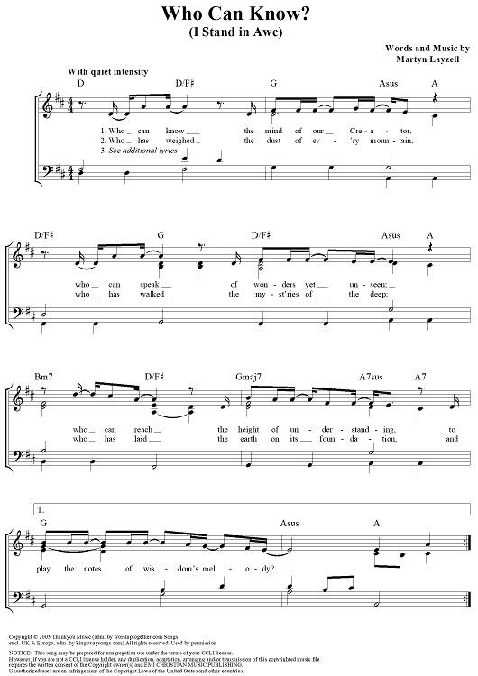 "Who Can Know? (I Stand in Awe)" Sheet Music by Martin Layzell