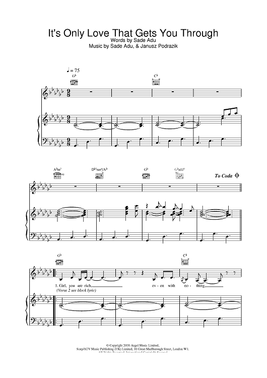 "Its Only Love That Gets You Through" Sheet Music by Sade